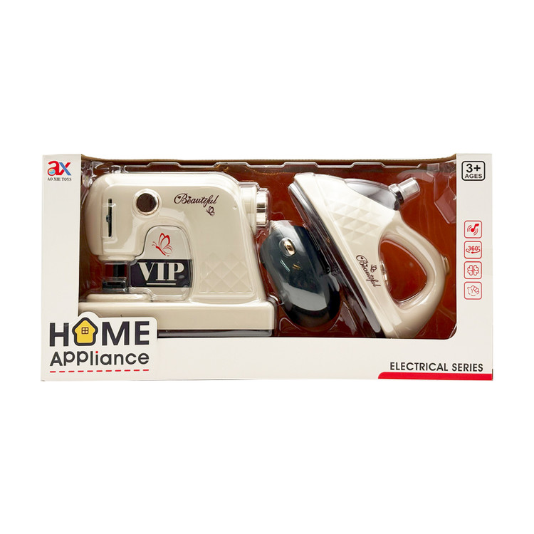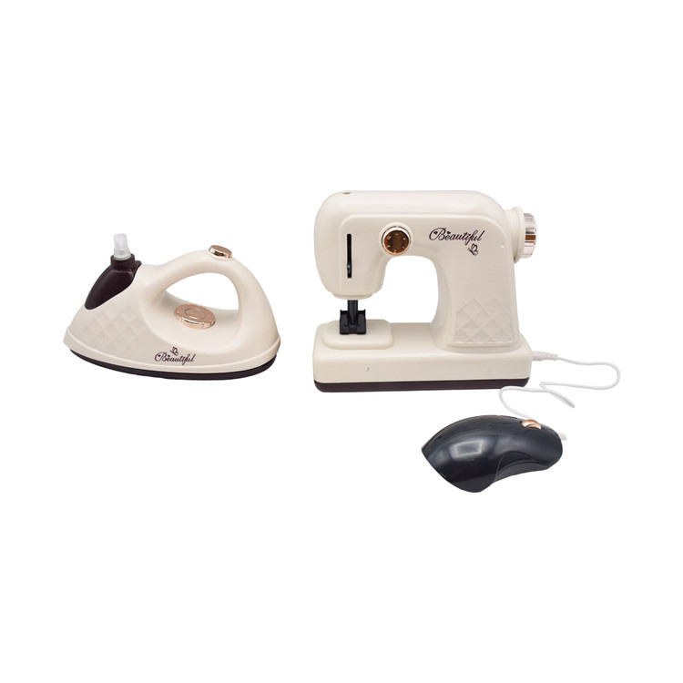اتو لباس: دارای مخزن آب و امکان اسپری کردن، دارای ویبره هنگام فشار روی سطح. چرخ خیاطی: دارای چراغ آبی به هنگام دوخت، دارای صدا. منبع انرژی: باتری قلمی مناسب کودکان